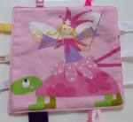 Above shows the little bag on the pram – I used some pink bias binding to make some little straps to match the binding on the pram. The material is just a fat quarter of fabric and the lining is just some plain cotton. I made the bag and a nappy from the fat quarter and still have a little bit left.